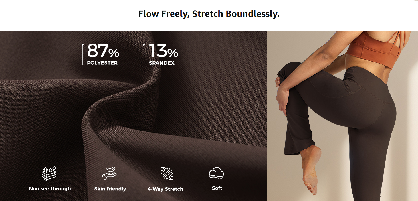 PREMIUM FABRIC - Matte material, made from 87% polyester + 13% spandex. Breathable, buttery soft, 4-way stretchy and moisture-wicking fabric keeps you dry and comfortable. Non see-through material for a full range of motion without worries. Perfect for sports like yoga, running, gym, or casual stylish daily wear.