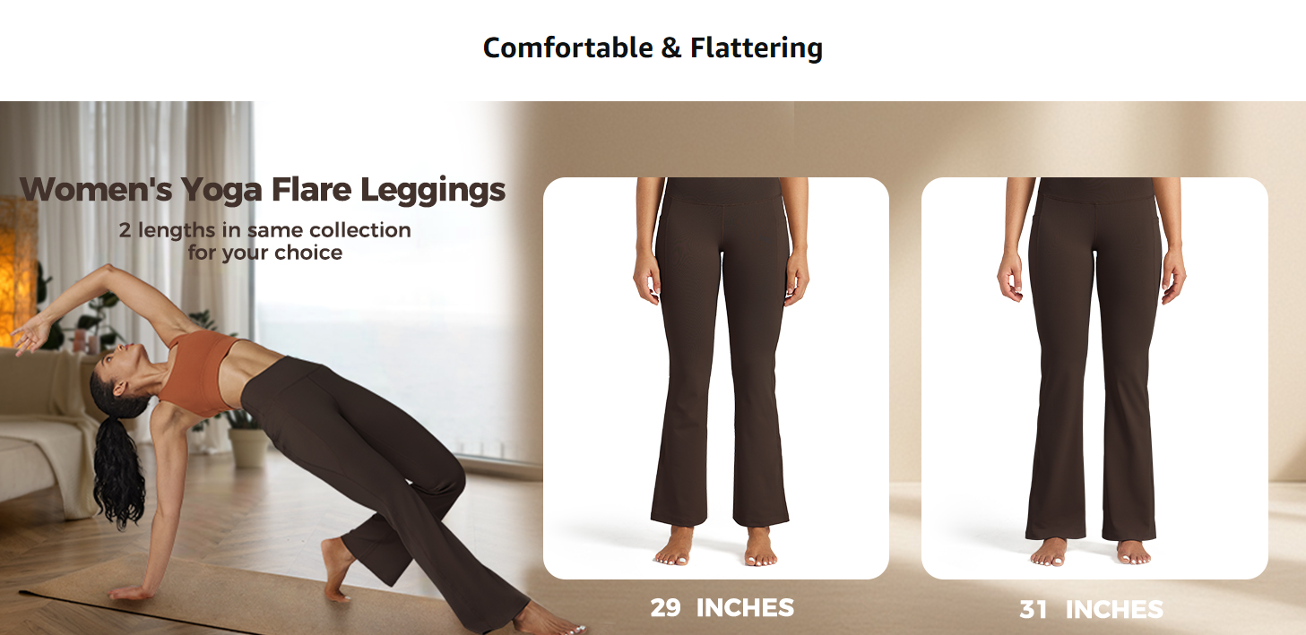 BOOTCUT DESIGN - Slim fit through the thigh and hip, slightly flared leg opening, no matter sport or for work, make you look elegant and charming.