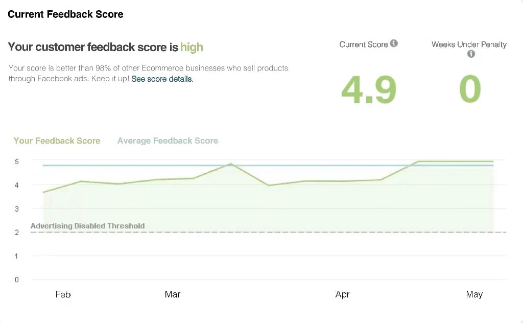 Our official Facebook customer satisfaction score reaches an impressive 4.9 out of 5. This score is higher than that of 98% of other e-commerce businesses selling products through Facebook ads.